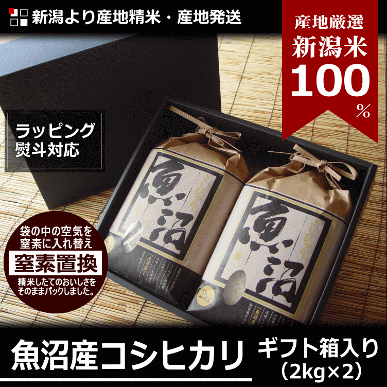 価格: 4,968円 レビュー評価:4.74 レビュー数:31 ■ 商 品 名 贈答用ギフト 新潟 魚沼産コシヒカリ4kg(2kg*2袋) 窒素置換パック処理済み 29年度産 ■ 商 品 情 報 山々に囲まれた豪雪地帯…魚沼。 水と空気が綺麗な新潟の大地が美味しいお米を育てます。 米柄データバンクにおいて魚沼産コシヒカリと共にAランクに格付けされており日本穀物検定協会が毎年発表している米の食味ランキングにおいて「中越地区コシヒカリ」は最高ランクの「特A」に選ばれております。 2kgという小分けにパックで状態でお届けの為常に新鮮な状態のお米を食べていただけます。 ■ 窒素置換パック処理とは? 袋の中の酸素を窒素に置き換えることで 害虫やカビの発生を防ぎ酸化による味の低下を防ぎます。 ■ お米の追加送料について クロネコヤマトの運賃改正および荷物の重量別規制が厳しくなったため、送料無料商品を購入の場合や、5,000円以上のまとめ買いの場合でも本州以 (更新日時:2017/10/01 21:23) Supported by 楽天ウェブサービス |